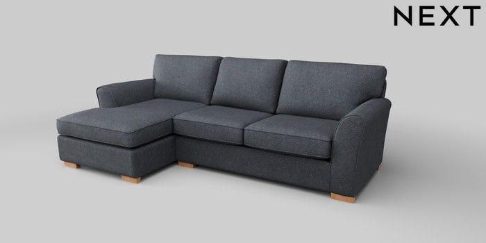 6.12.1 Buy Michigan II Medium Sofa Chaise - Left Hand Tweedy Chenille Navy Blue Slim Block - Light from the Next UK online shop Click here to use our accessible website