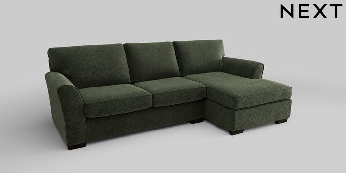 6.12.1 Buy Michigan II Medium Sofa Chaise - Right Hand Boucle Chenille Dark Moss Green Slim Block - Dark from the Next UK online shop Click here to use our accessible website