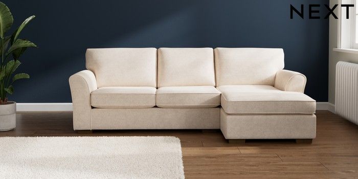 7.3.1 Buy Michigan II Medium Sofa Chaise - Right Hand Boucle Chenille Oyster Slim Block - Mid from the Next UK online shop