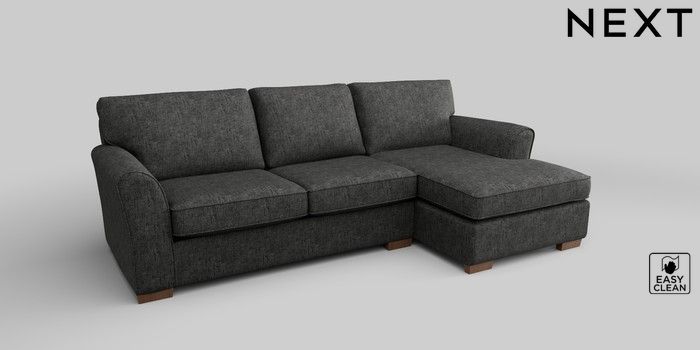 6.12.1 Buy Michigan II Medium Sofa Chaise - Right Hand Boucle Weave Easy Clean Charcoal Grey Slim Block - Mid from the Next UK online shop Click here to use our accessible website