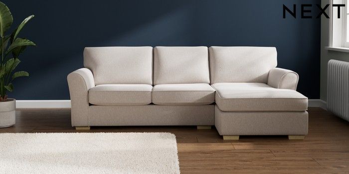 7.3.1 Buy Michigan II Medium Sofa Chaise - Right Hand Cotswold Chenille Oyster Slim Block - Light from the Next UK online shop