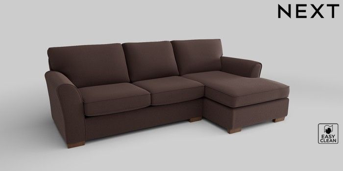 6.12.1 Buy Michigan II Medium Sofa Chaise - Right Hand Fine Chenille Easy Clean Chocolate Brown Slim Block - Mid from the Next UK online shop Click here to use our accessible website