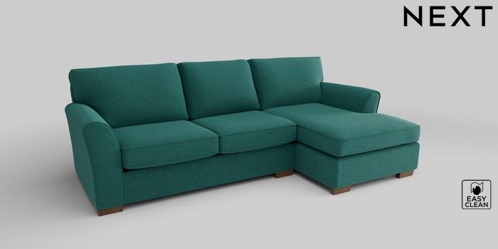 6.12.1 Buy Michigan II Medium Sofa Chaise - Right Hand Fine Chenille Easy Clean Dark Juniper Green Slim Block - Mid from the Next UK online shop Click here to use our accessible website