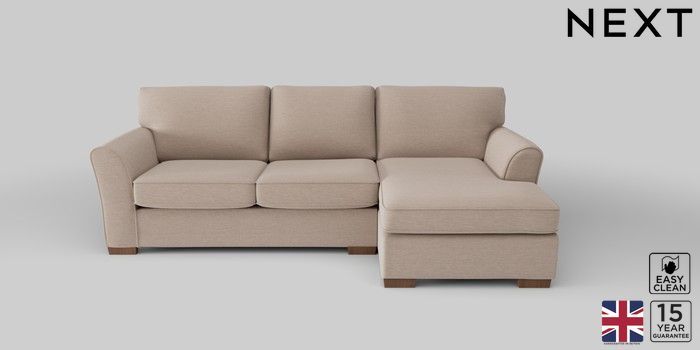 6.12.1 Buy Michigan II Medium Sofa Chaise - Right Hand Fine Chenille Easy Clean Mid Taupe Brown Slim Block - Mid from the Next UK online shop Click here to use our accessible website