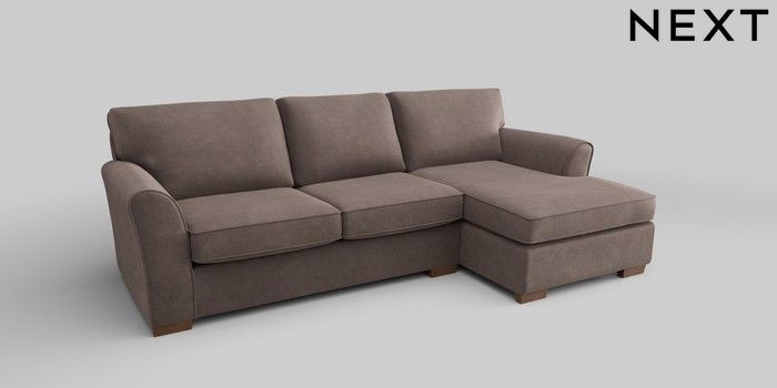 6.12.1 Buy Michigan II Medium Sofa Chaise - Right Hand Luxe Chenille Mink Brown Slim Block - Mid from the Next UK online shop Click here to use our accessible website