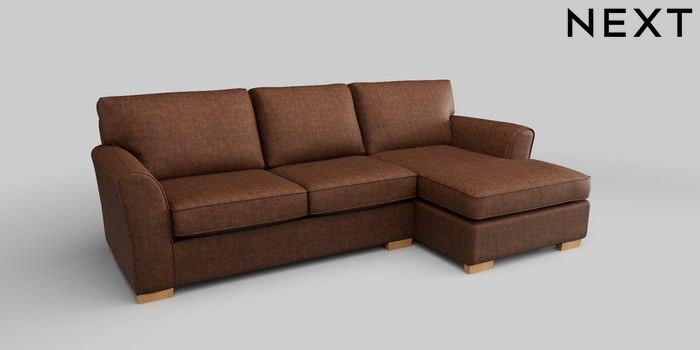 6.12.1 Buy Michigan II Medium Sofa Chaise - Right Hand Monza Faux Leather Easy Clean Chestnut Brown Slim Block - Light from the Next UK online shop Click here to use our accessible website