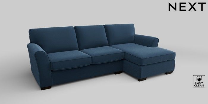 6.12.1 Buy Michigan II Medium Sofa Chaise - Right Hand Plush Velvet Easy Clean Airforce Blue Slim Block - Dark from the Next UK online shop Click here to use our accessible website