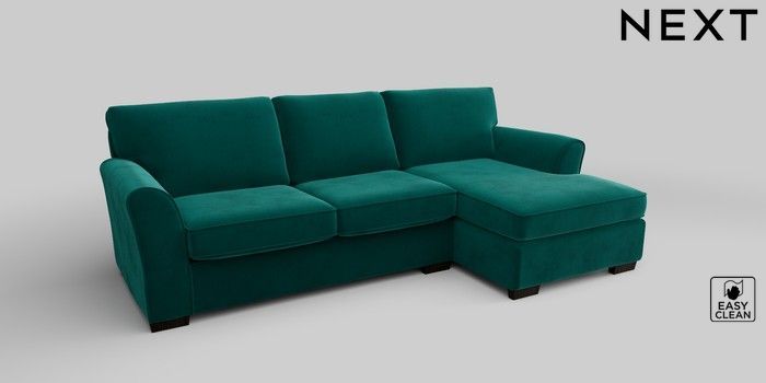 6.12.1 Buy Michigan II Medium Sofa Chaise - Right Hand Plush Velvet Easy Clean Juniper Green Slim Block - Dark from the Next UK online shop Click here to use our accessible website