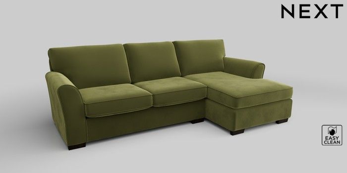 6.12.1 Buy Michigan II Medium Sofa Chaise - Right Hand Plush Velvet Easy Clean Mid Olive Green Slim Block - Dark from the Next UK online shop Click here to use our accessible website