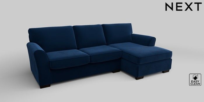 6.12.1 Buy Michigan II Medium Sofa Chaise - Right Hand Plush Velvet Easy Clean Navy Blue Slim Block - Dark from the Next UK online shop Click here to use our accessible website