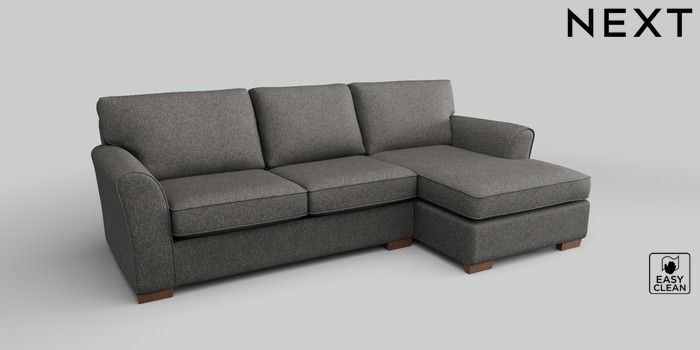 6.12.1 Buy Michigan II Medium Sofa Chaise - Right Hand Tweedy Blend Easy Clean Dark Grey Slim Block - Mid from the Next UK online shop Click here to use our accessible website