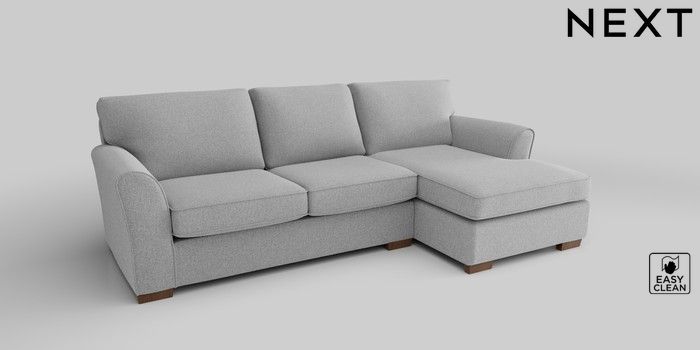 6.12.1 Buy Michigan II Medium Sofa Chaise - Right Hand Tweedy Blend Easy Clean Light Silver Grey Slim Block - Mid from the Next UK online shop Click here to use our accessible website