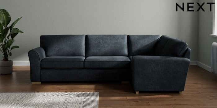 7.3.1 Buy Michigan II Large Corner Sofa - Right Hand Plush Chenille Slate Blue Slim Block - Light from the Next UK online shop Click here to use our accessible website