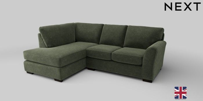 6.12.1 Buy Michigan II Small Corner Chaise - Left Hand Luxe Chenille Mid Green Slim Block - Dark from the Next UK online shop Click here to use our accessible website