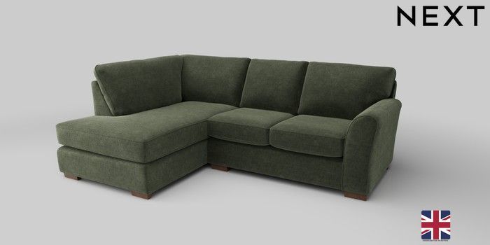 6.12.1 Buy Michigan II Small Corner Chaise - Left Hand Luxe Chenille Mid Green Slim Block - Mid from the Next UK online shop Click here to use our accessible website