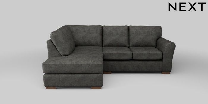7.2.5 Buy Michigan II Small Corner Chaise - Left Hand Monza Faux Leather Easy Clean Dark Grey Slim Block - Mid from the Next UK online shop Click here to use our accessible website