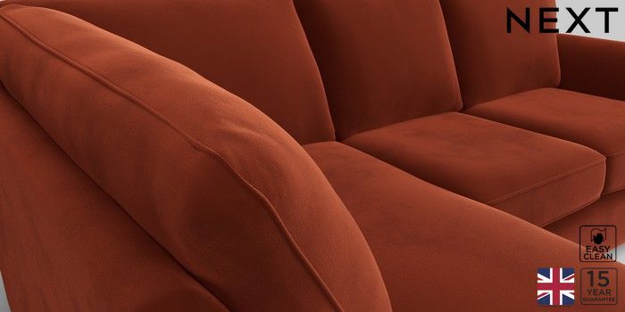 6.12.1 Buy Michigan II Small Corner Chaise - Left Hand Plush Velvet Easy Clean Ginger Orange Slim Block - Mid from the Next UK online shop Click here to use our accessible website