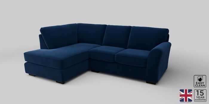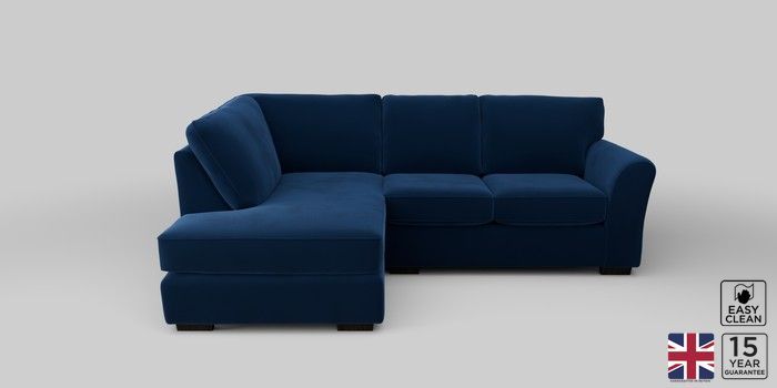 6.12.1 Buy Michigan II Small Corner Chaise - Left Hand Plush Velvet Easy Clean Navy Blue Slim Block - Dark from the Next UK online shop Click here to use our accessible website