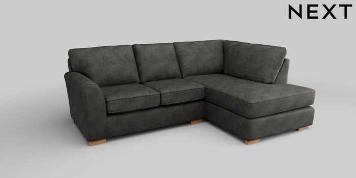 6.12.1 Buy Michigan II Small Corner Chaise - Right Hand Monza Faux Leather Easy Clean Dark Grey Slim Block - Light from the Next UK online shop Click here to use our accessible website