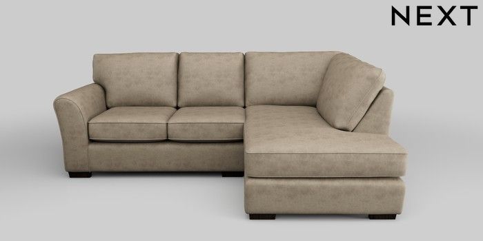7.2.5 Buy Michigan II Small Corner Chaise - Right Hand Monza Faux Leather Easy Clean Mink Brown Slim Block - Dark from the Next UK online shop Click here to use our accessible website