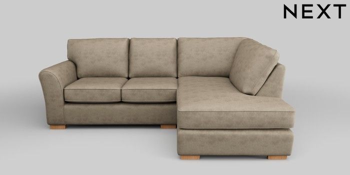 7.2.5 Buy Michigan II Small Corner Chaise - Right Hand Monza Faux Leather Easy Clean Mink Brown Slim Block - Light from the Next UK online shop Click here to use our accessible website