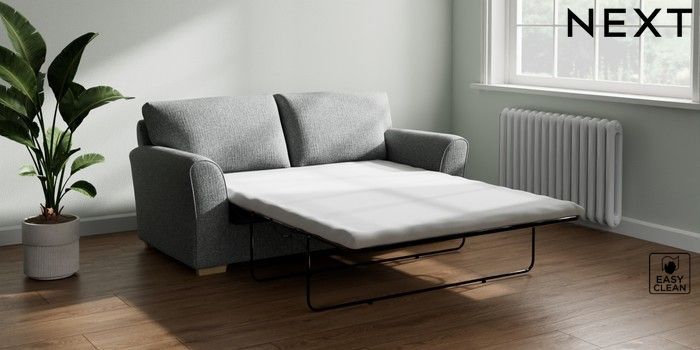7.3.1 Buy Michigan II Sofa Bed Chunky Boucle Easy Clean Mid Grey Slim Block - Light from the Next UK online shop