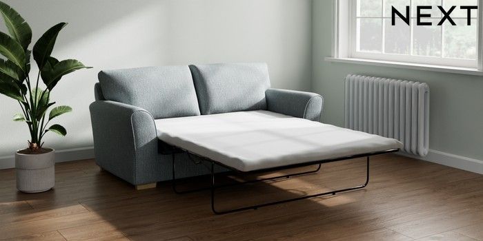 7.3.1 Buy Michigan II Sofa Bed Chunky Weave Mid Blue Slim Block - Light from the Next UK online shop