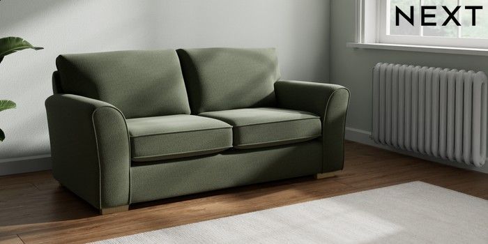 7.2.10 Buy Michigan II Sofa Bed Relaxed Linen Look Dark Green Slim Block - Light from the Next UK online shop Click here to use our accessible website