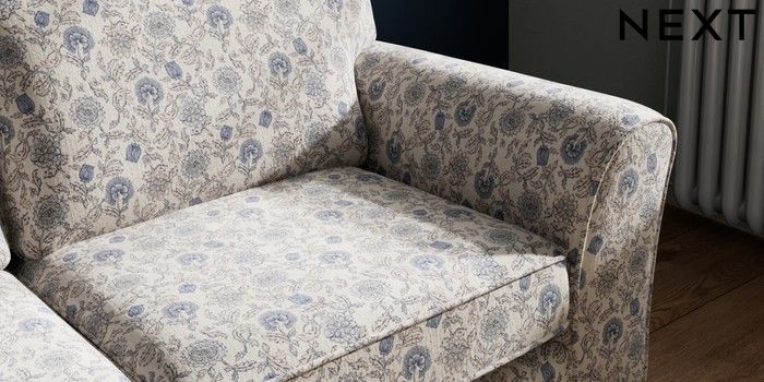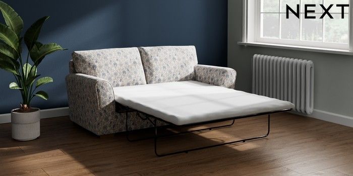 7.3.1 Buy Michigan II Sofa Bed Relaxed Linen Look Print Woodblock Floral Blue Slim Block - Mid from the Next UK online shop Click here to use our accessible website