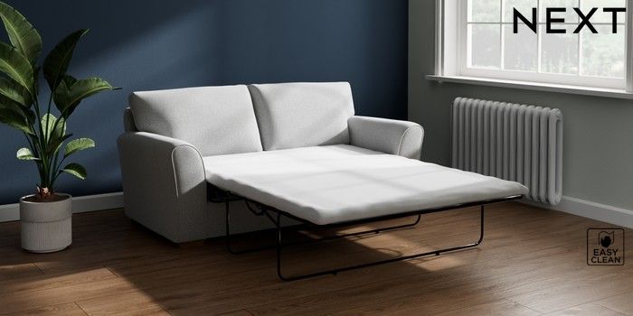 7.3.1 Buy Michigan II Sofa Bed Tweedy Blend Easy Clean Light Silver Grey Slim Block - Mid from the Next UK online shop