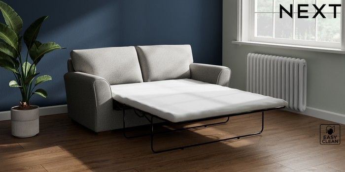 7.3.1 Buy Michigan II Sofa Bed Woven Chenille Easy Clean Light Grey Slim Block - Mid from the Next UK online shop