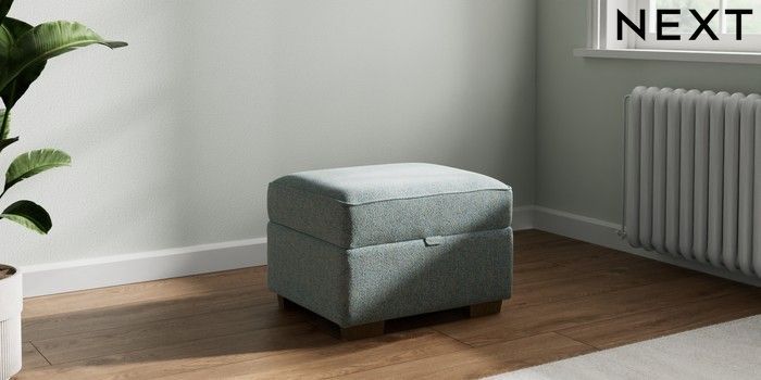 7.2.10 Buy Michigan II Storage Footstool Chunky Marl Mid Blue Small Slim Block - Mid from the Next UK online shop Click here to use our accessible website