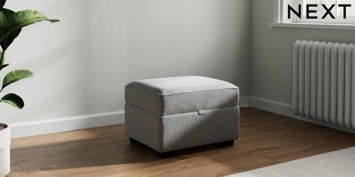 7.2.10 Buy Michigan II Storage Footstool Chunky Marl Mid Grey Small Slim Block - Dark from the Next UK online shop Click here to use our accessible website
