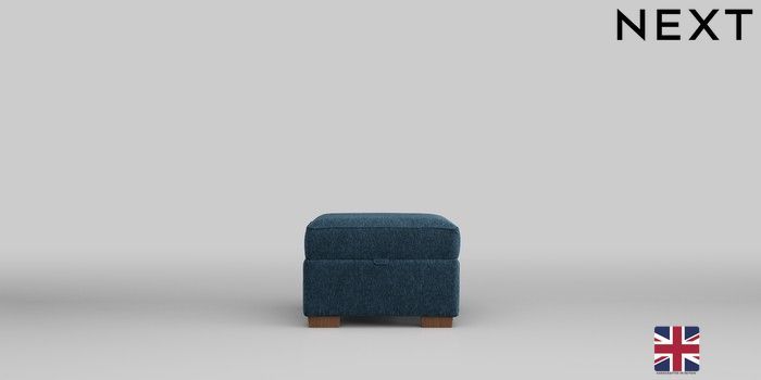 6.12.1 Buy Michigan II Storage Footstool Cotswold Chenille Dark Blue Small Slim Block - Mid from the Next UK online shop Click here to use our accessible website