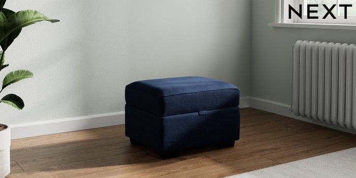 7.2.10 Buy Michigan II Storage Footstool Luxe Chenille Navy Blue Small Slim Block - Dark from the Next UK online shop Click here to use our accessible website
