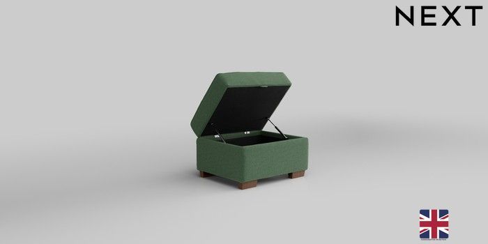 6.12.1 Buy Michigan II Storage Footstool Relaxed Linen Look Dark Green Small Slim Block - Mid from the Next UK online shop Click here to use our accessible website