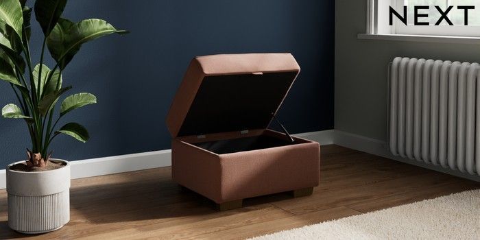 7.3.1 Buy Michigan II Storage Footstool Relaxed Linen Look Light Rust Brown Small Slim Block - Mid from the Next UK online shop