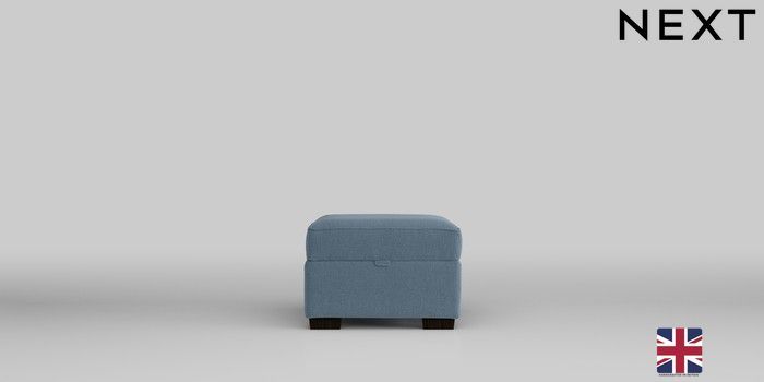 6.12.1 Buy Michigan II Storage Footstool Relaxed Linen Look Mid Blue Small Slim Block - Dark from the Next UK online shop Click here to use our accessible website