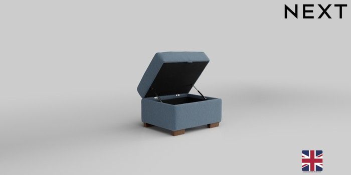 6.12.1 Buy Michigan II Storage Footstool Relaxed Linen Look Mid Blue Small Slim Block - Mid from the Next UK online shop Click here to use our accessible website
