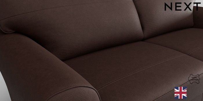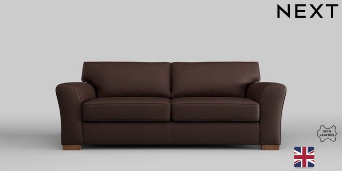 7.0.3 Buy Michigan Leather 3 Seater Small Sofa Rustic Leather Dark Brown Slim Block - Mid from the Next UK online shop Click here to use our accessible website