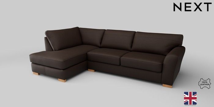6.12.1 Buy Michigan Leather Large Corner Chaise - Left Hand Turin Leather Dark Brown Slim Block - Light from the Next UK online shop Click here to use our accessible website