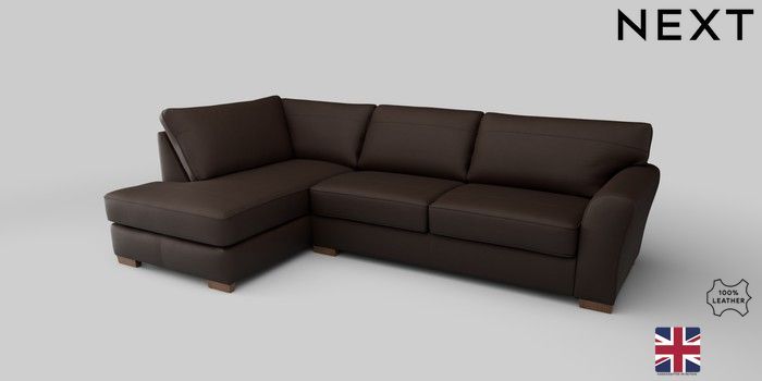 6.12.1 Buy Michigan Leather Large Corner Chaise - Left Hand Turin Leather Dark Brown Slim Block - Mid from the Next UK online shop Click here to use our accessible website