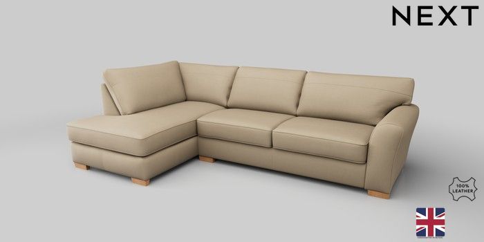 6.12.1 Buy Michigan Leather Large Corner Chaise - Left Hand Turin Leather Light Natural Slim Block - Light from the Next UK online shop Click here to use our accessible website