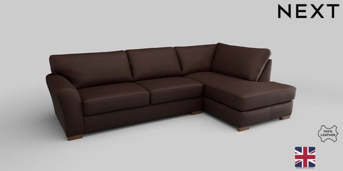 6.12.1 Buy Michigan Leather Large Corner Chaise - Right Hand Rustic Leather Dark Brown Slim Block - Mid from the Next UK online shop Click here to use our accessible website