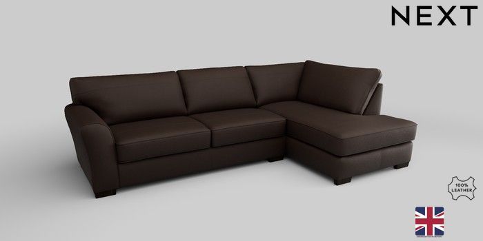 6.12.1 Buy Michigan Leather Large Corner Chaise - Right Hand Turin Leather Dark Brown Slim Block - Dark from the Next UK online shop Click here to use our accessible website