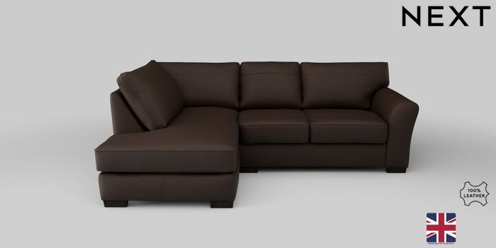 7.0.3 Buy Michigan Leather Small Corner Chaise - Left Hand Turin Leather Dark Brown Slim Block - Dark from the Next UK online shop Click here to use our accessible website