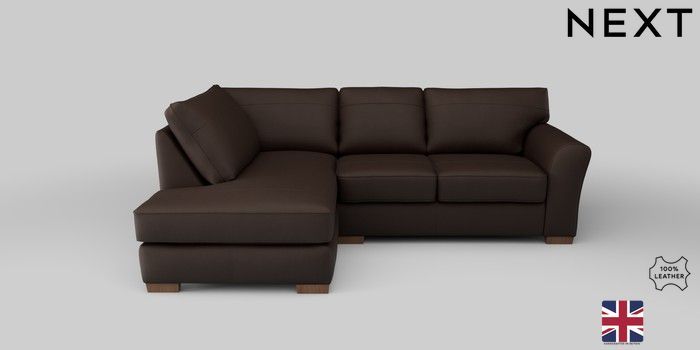 7.0.3 Buy Michigan Leather Small Corner Chaise - Left Hand Turin Leather Dark Brown Slim Block - Mid from the Next UK online shop Click here to use our accessible website