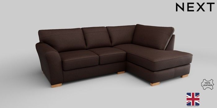 6.12.1 Buy Michigan Leather Small Corner Chaise - Right Hand Rustic Leather Dark Brown Slim Block - Light from the Next UK online shop Click here to use our accessible website