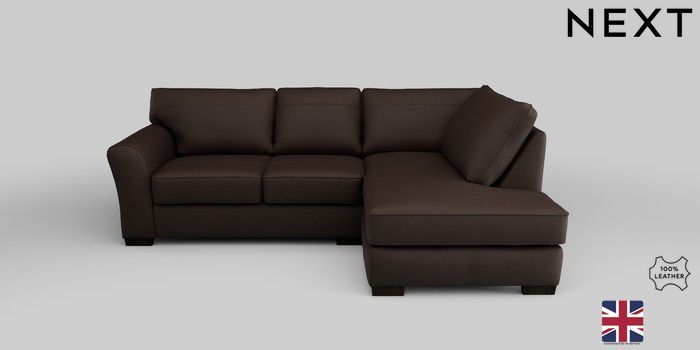 7.0.3 Buy Michigan Leather Small Corner Chaise - Right Hand Turin Leather Dark Brown Slim Block - Dark from the Next UK online shop Click here to use our accessible website
