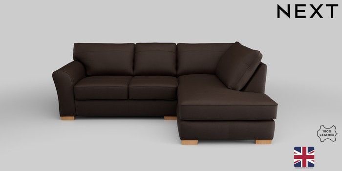 7.0.3 Buy Michigan Leather Small Corner Chaise - Right Hand Turin Leather Dark Brown Slim Block - Light from the Next UK online shop Click here to use our accessible website